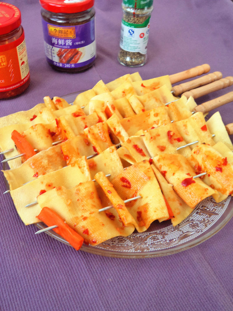 1、调味酱可以依据个人口味自己调制。2、豆皮串上刷油,可以避免被烤焦,也令烤串更香。