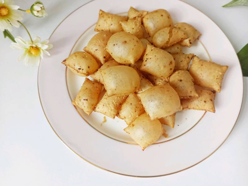 12:烤好的小豆皮,是不是很可爱,鼓鼓的肚子。手轻轻一捏就碎,咔滋咔滋脆烤豆皮完成了。