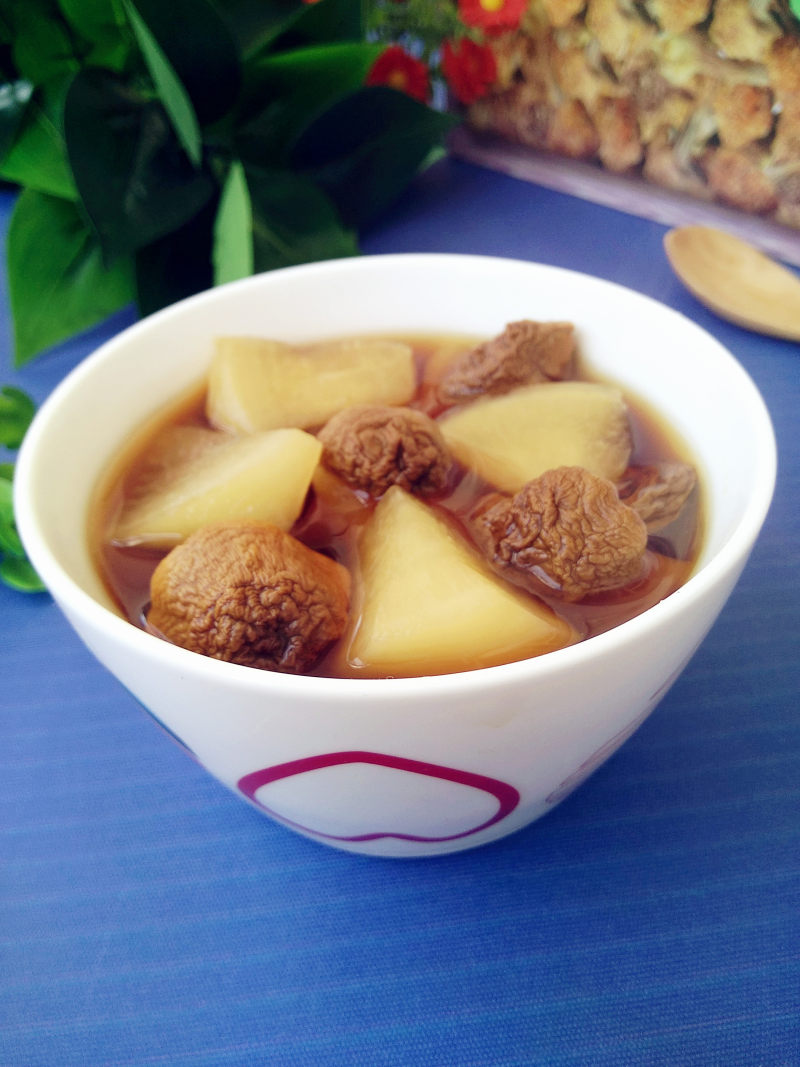 6:松蘑煲30分钟后白萝卜入锅同煲。