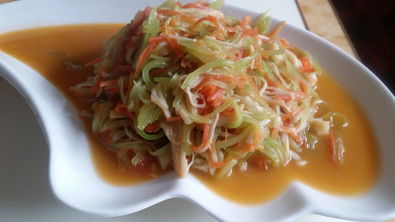 1炒的时候如果菜汁烧干了可加入适量的开水,菜里始终保持有汤汁味道会好吃些。2这种搭配炒出来的三丝味道非常的鲜美。
