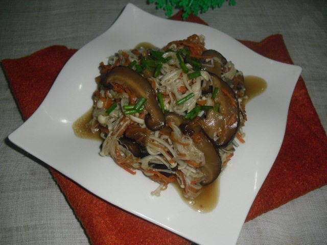 2:香菇,胡萝卜切细丝,金针菇撕开.尽量撕细一点.