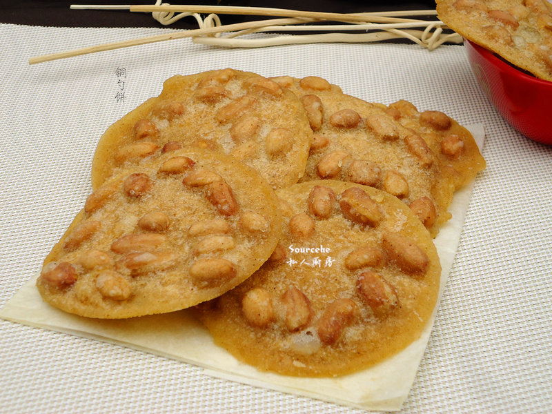 1:准备好所有食材,粘米粉、花生仁,模具(铜勺),PS:这种磨具在韶关各县市都有的卖,其他地方好像没有。