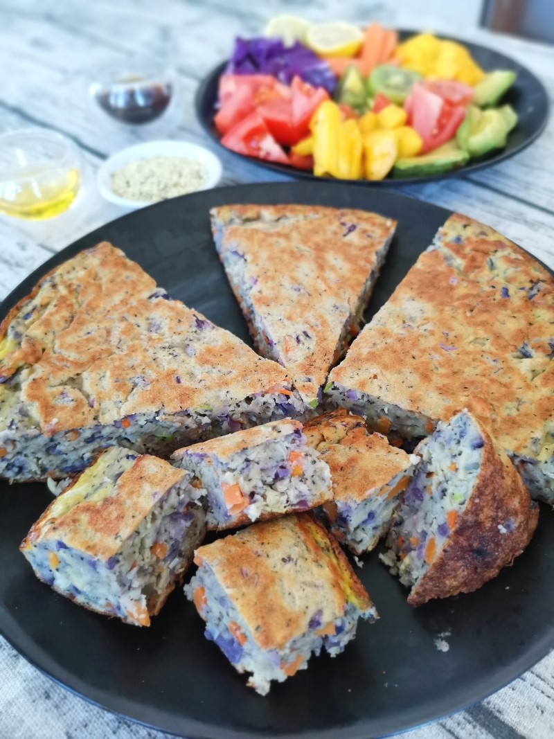 6:散发着诱人香味的火麻仁豆渣蔬菜饼制作完成,可以尽情享用了。