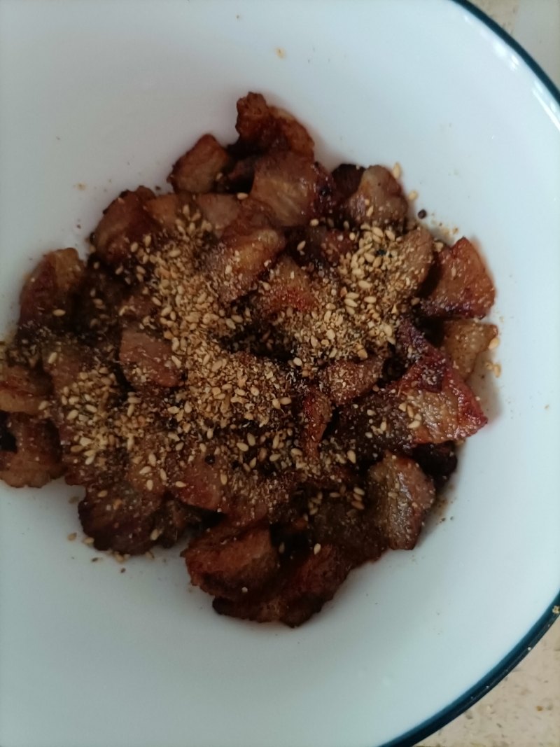 6:煎至五花肉片表面微微发焦,肥肉部分呈透明状即可
