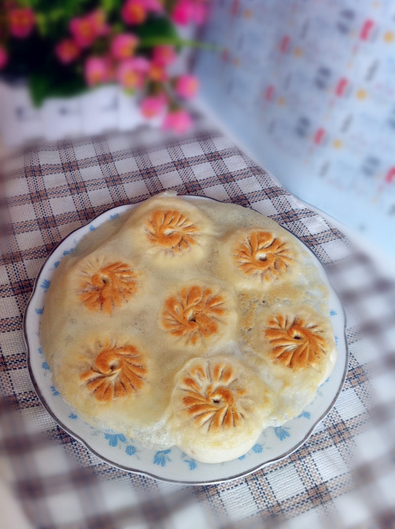 12:做好的煎包倒扣在盘子里