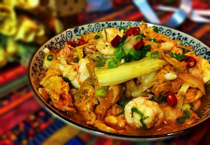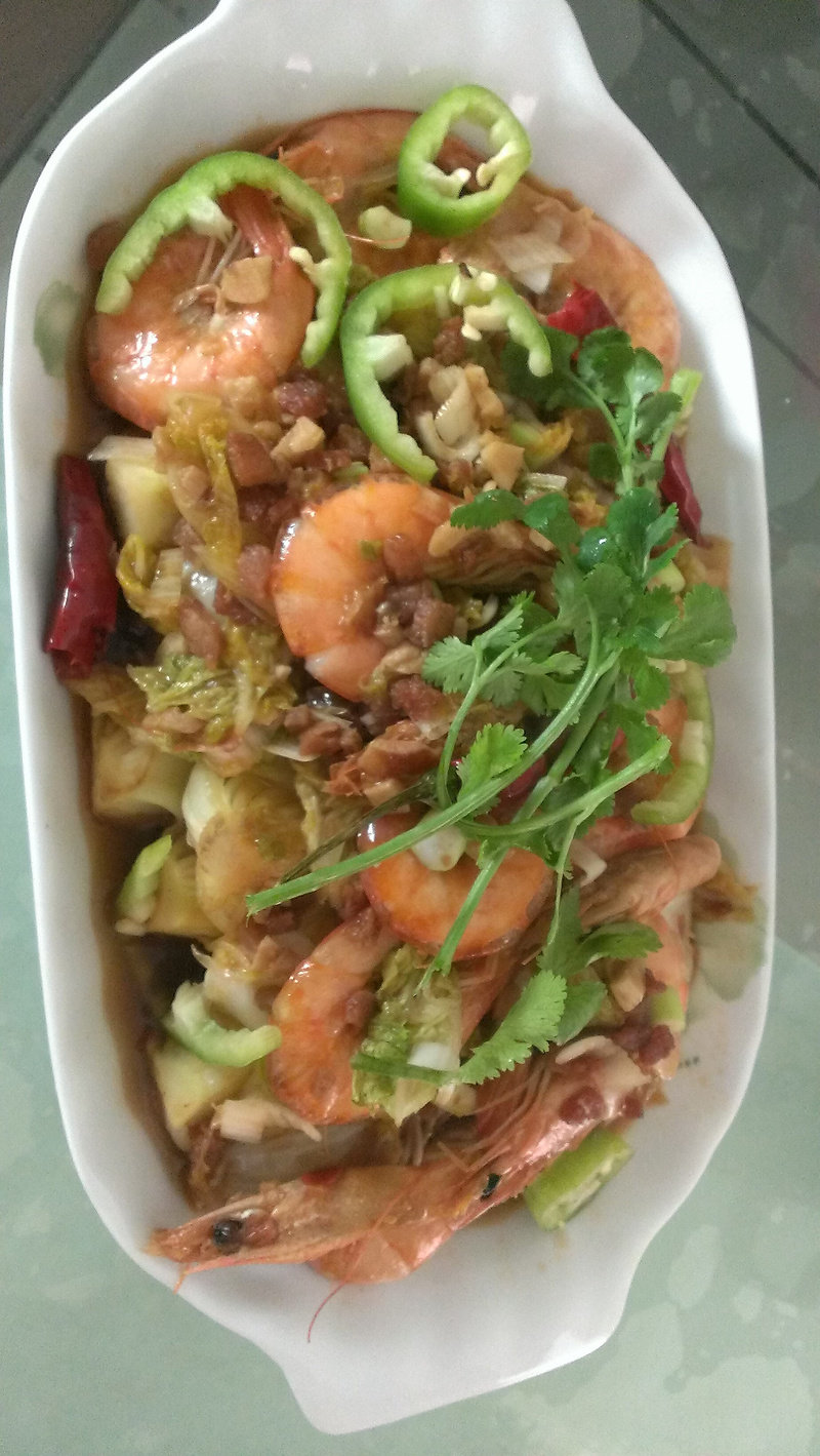 这道菜青虾的虾头红油是关键,再就是白菜帮一定片片儿才不会有那种水汲汲的口感