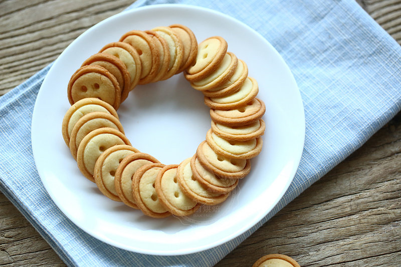1:材料:黄油:40克、糖粉:40克、盐:1克、鸡蛋:20克、低筋粉:100克、泡打粉:1克