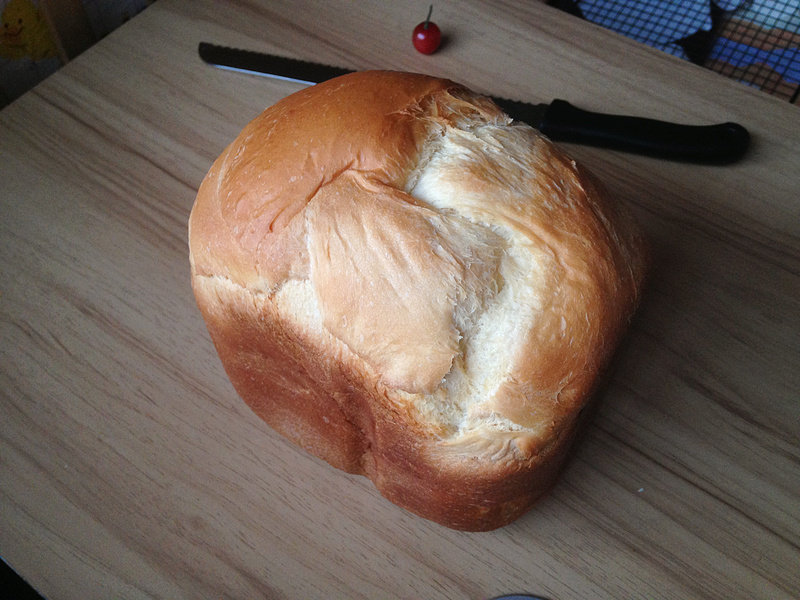 4:然后~什么都不用做了,面包机会自动揉面、发酵、烘烤,结束时会叮叮的提醒你。全程用时2小时40分钟。