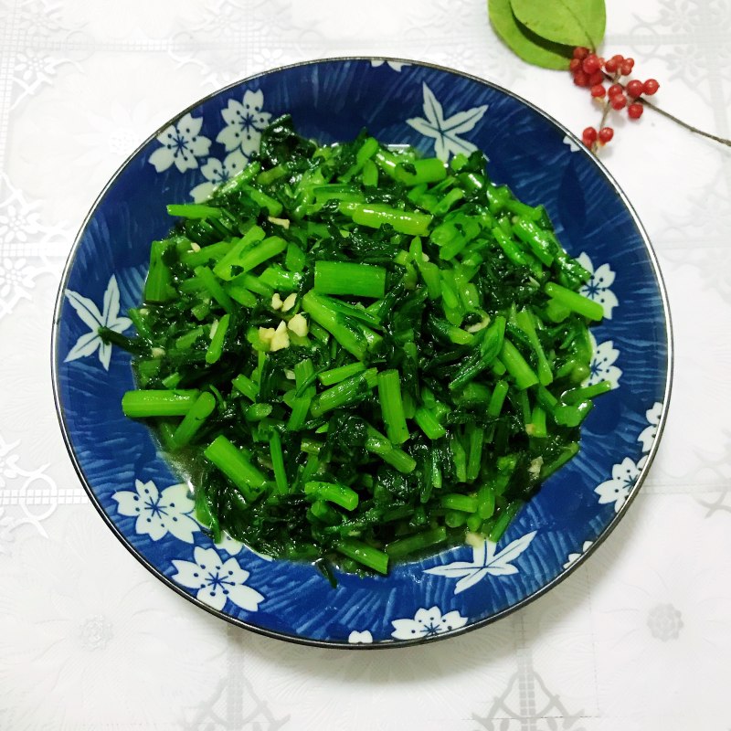 3:下茼蒿菜一起炝炒加少许盐和鸡粉调味即可!(断生可以了)