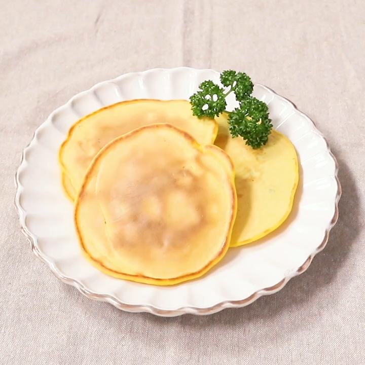 1:胚皮抹少许黄油放入煎锅加热至金黄。