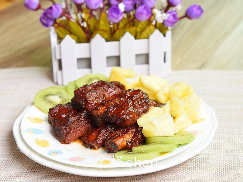 12:烘烤好的排骨上桌时放些水果装饰