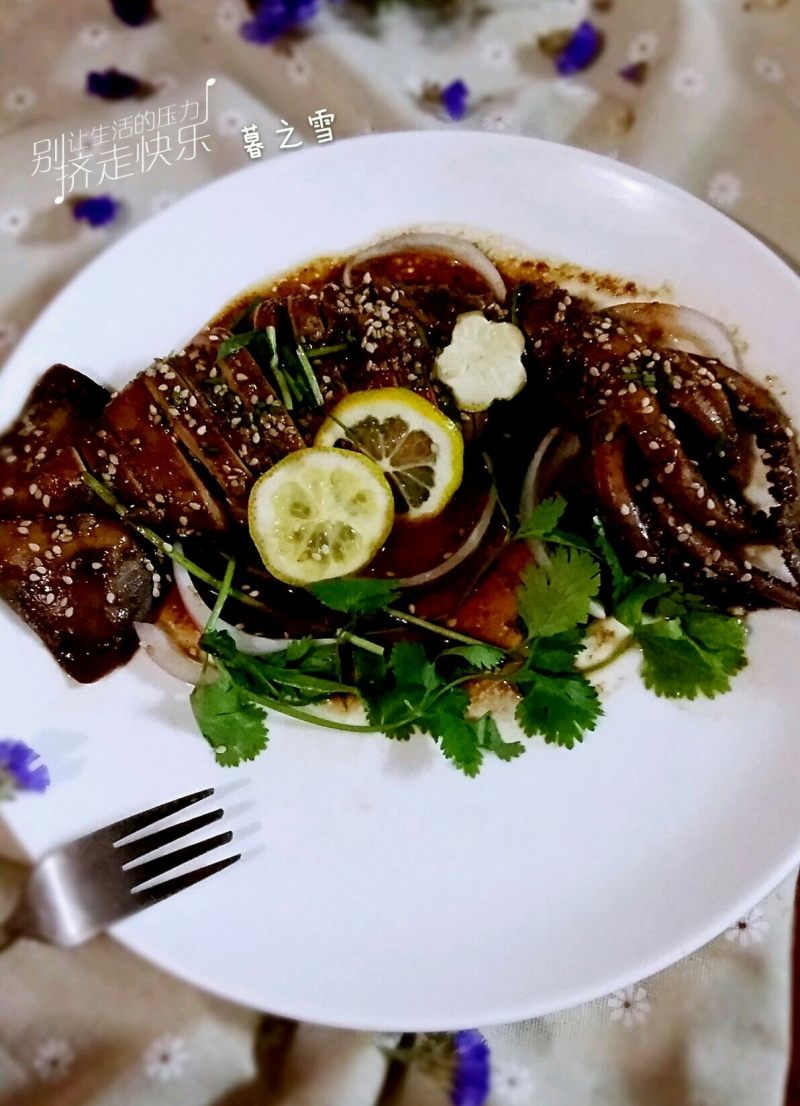 6:这样子一份南乳汁卤鱿鱼就完成了。