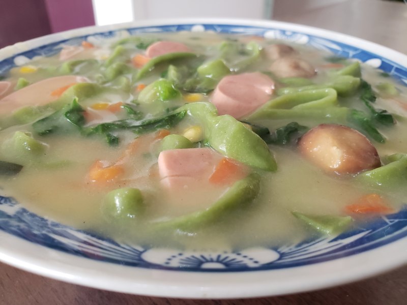 10:倒入玉米面水,再煮2分钟左右即可。
