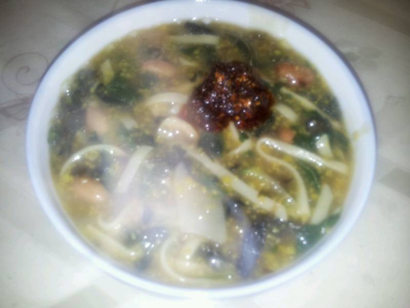 4:已经粘稠了,花生和黄豆已经面面的了,下面条吧!
