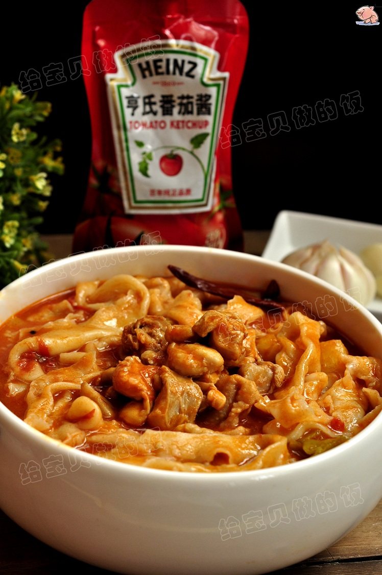 7:下入约四汤匙的亨氏蕃茄酱炒出红油。