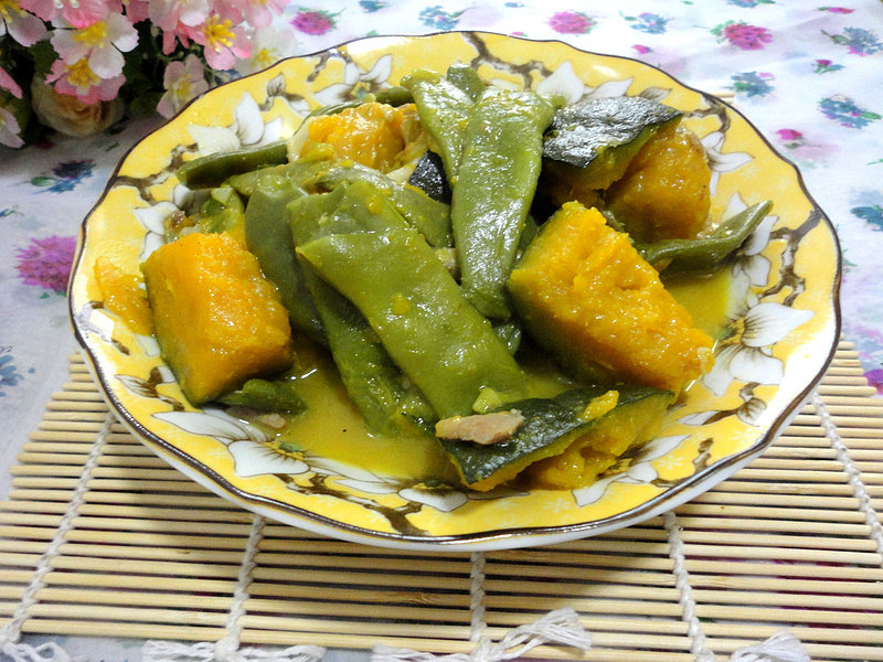 1:豆角和南瓜都洗净,南瓜去籽切小块,豆角摘去筋备用