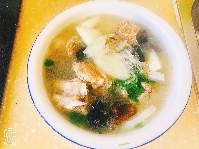 3:烧开后加入事先备好的冬瓜、粉条、木耳。