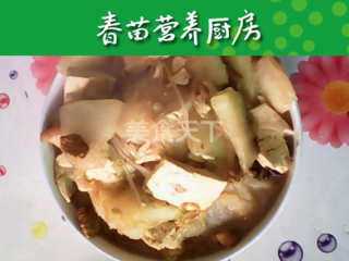 4:放入豆腐,和泡好的粉条,小火慢炖。