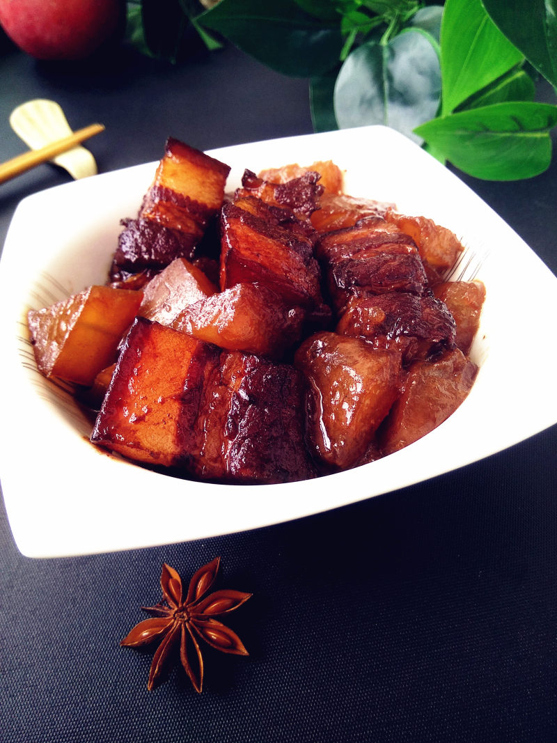 5:加料酒炒均匀,加适量水盖上锅盖烧。大火烧开锅,改小火慢烧,其间适时翻炒。