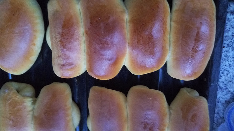 1、压面机不适合非常软的面团。开始的面团非常粘,压面机很难压得平滑,所以只好掺一些干粉。干粉掺多了,加上反复擀压使得组织变紧所以擀好后的面团,手感比较硬。不过,别担心,继续分割,滚圆好了。2、刚出炉的面包非常的松软,带着诱人的香味。放一些时间凉面包手感会硬了一些,放入微波炉转了30秒,香味马上就出来了