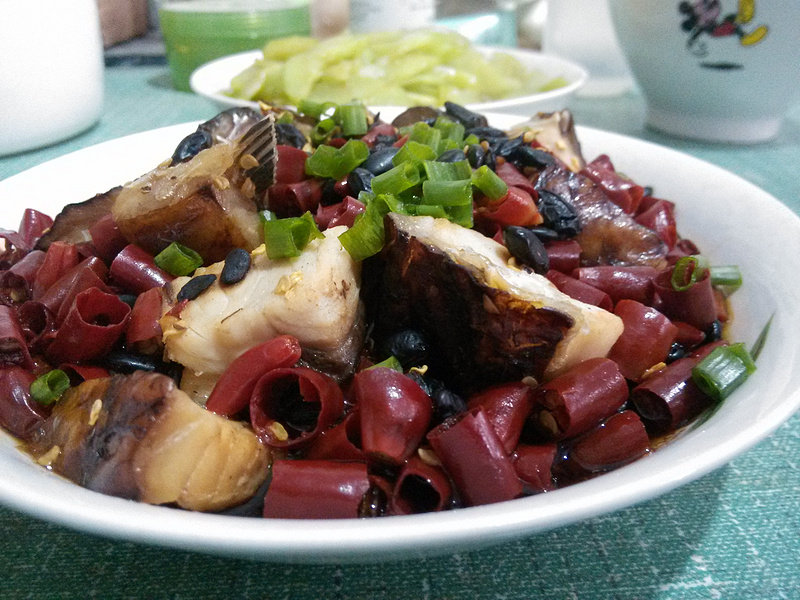 自制青鱼干一碗;干辣椒一碗;干豆豉三分之一碗;