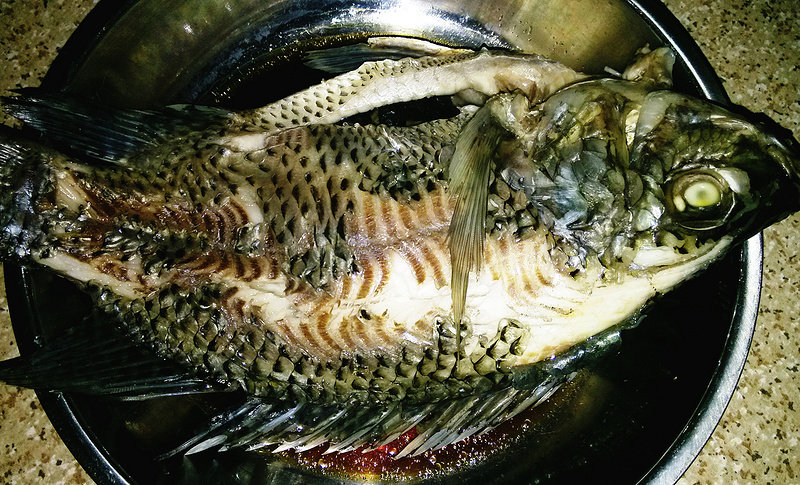 7:看蒸完的样子,似乎之前切不切那几刀都行,火候也可以再少一点点,悄悄把头摆正,照样雄纠纠上桌