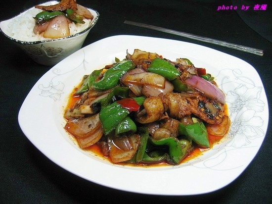 Ps:1、盐煎肉的做法并不拘泥于一种,配菜可以用蒜苗、青椒、豆干、洋葱等等,调料也可以豆瓣、豆豉一起放,或者只放豆豉。味极鲜酱油和醋可以根据自己的口味决定放不放。2、炒五花肉时,炒至肥肉吐油肉片打卷儿时的口感最好,肥而不腻,无论做回锅肉或者盐煎肉都是如此。3、青椒和蒜苗炒多久根据自己口味吧,个人喜欢青椒炒久点、蒜苗炒至断生。4、最后调入一茶匙醋称为“起锅醋”,令菜会吃出醋香而不会有酸味。当然不喜欢放醋的就算了。