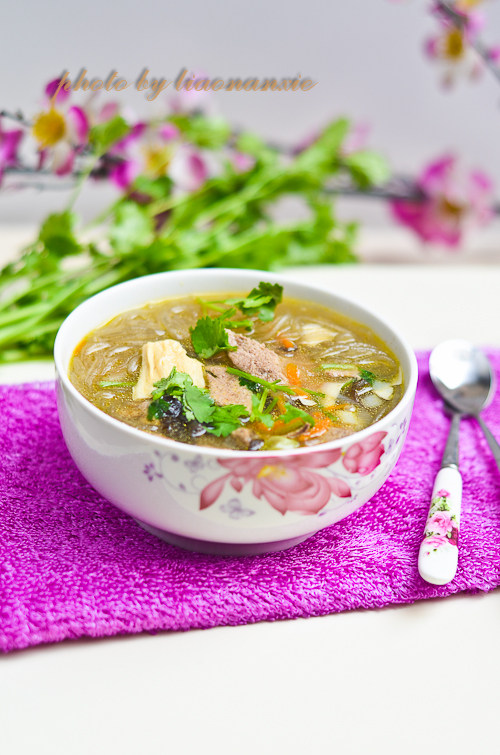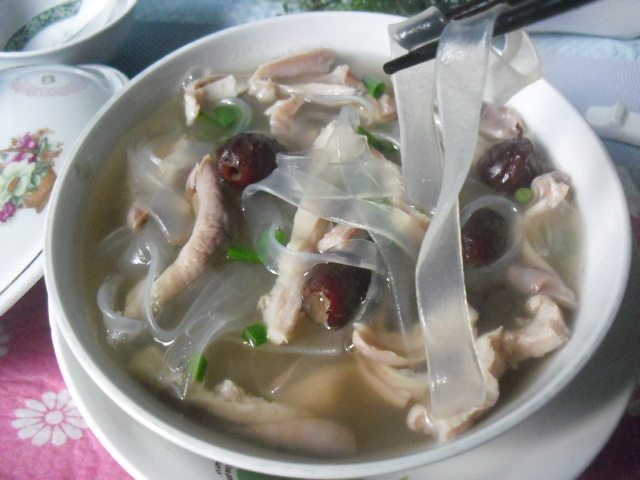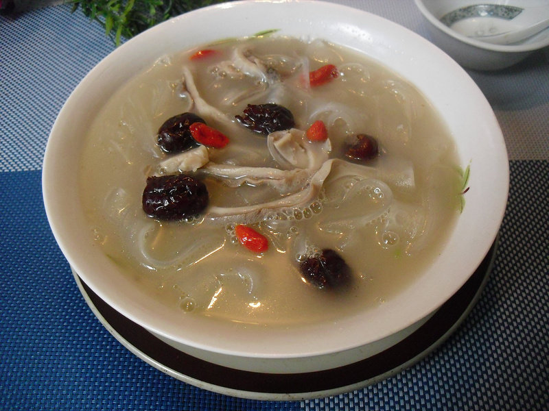 6:放入红枣,枸杞,粉条,盐继续煮10分钟,加入鸡精胡椒调味.