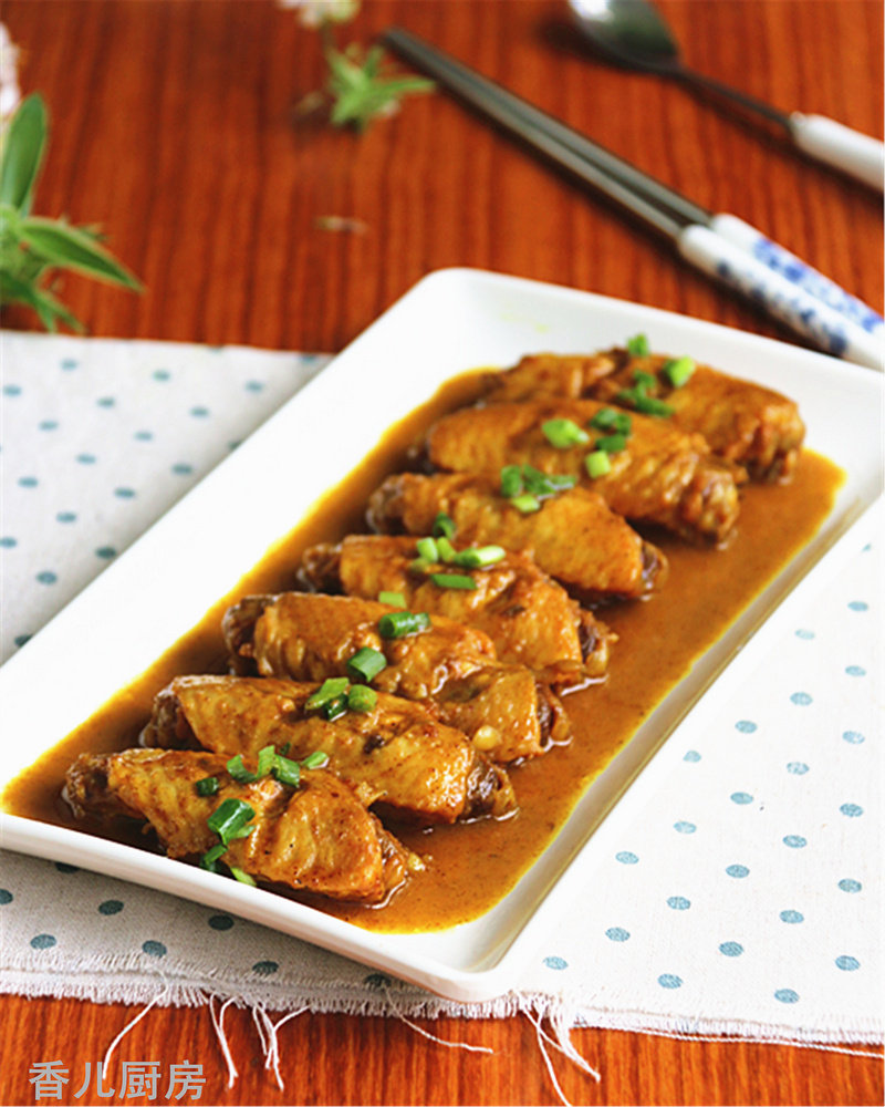 1.鸡翅膀中间切2刀便于更入味,不要油咖喱可以用其它咖喱。2.这道菜的汤汁不要收干味道更佳。