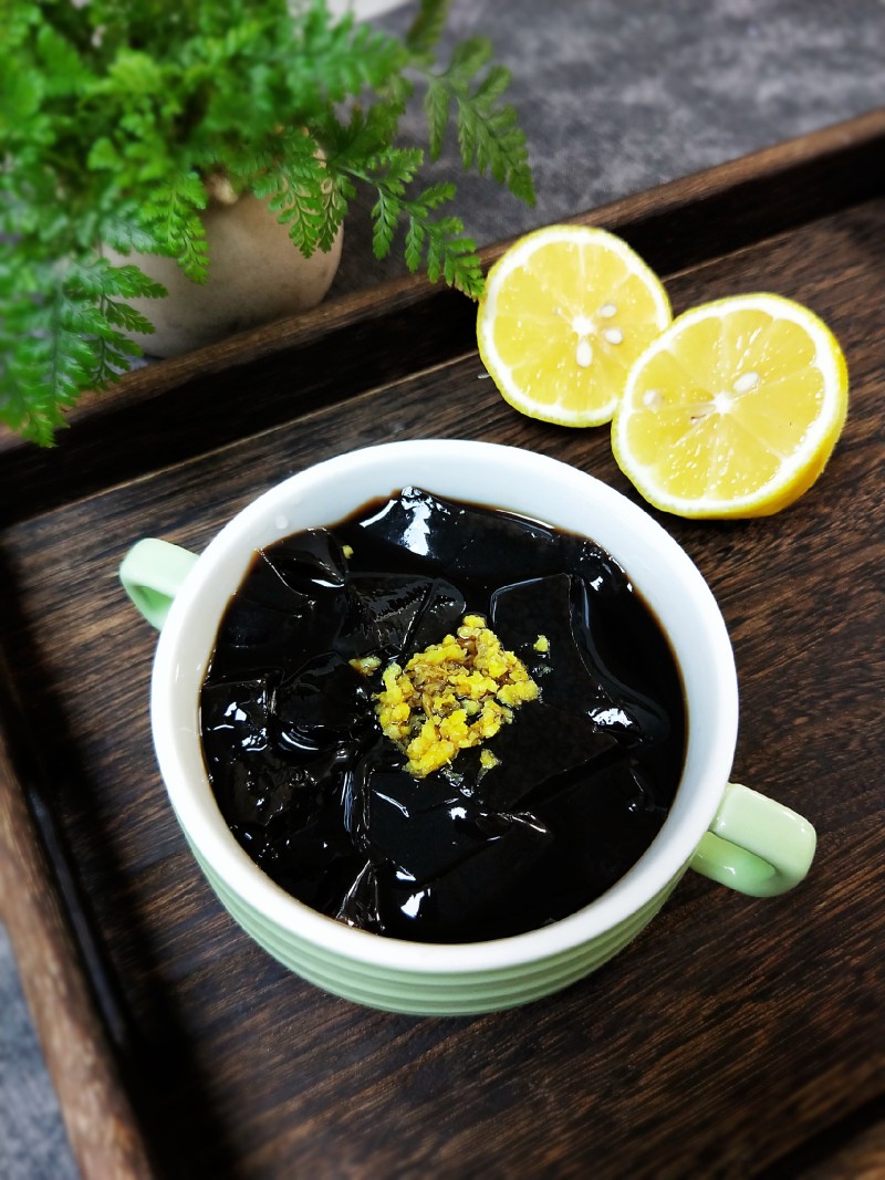 1:准备仙草一碗、柠檬一个。(之前发过制作烧仙草的简单菜谱,这里就不详细在描述了)