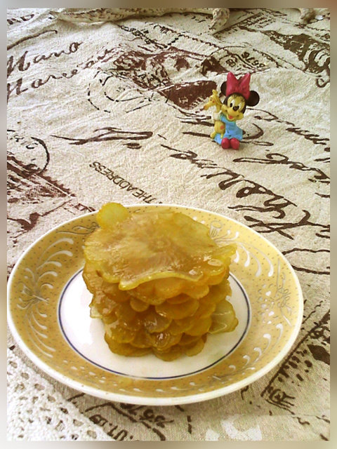 佛手柑切薄片更容易腌透。也可以随自己喜好切成任意形状。做好的糖渍佛手可以做零食食用,也可做食物配料。