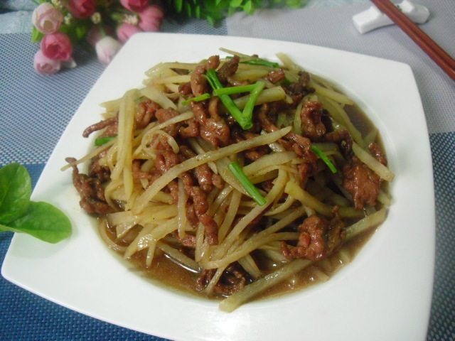 1、牛肉焯水要尽除血水。2、料汁炒好后直接拌在肉里就可以了,肉不必下锅翻炒了,这样比较省事儿。3、莲藕块可以换成其它块状蔬菜,也挺好的。