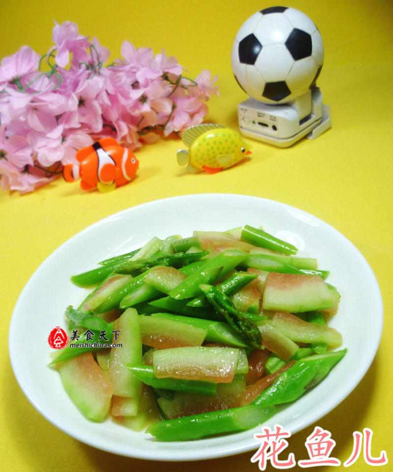 7:烧锅倒油烧热,下入切好的西瓜皮翻炒翻炒。