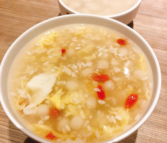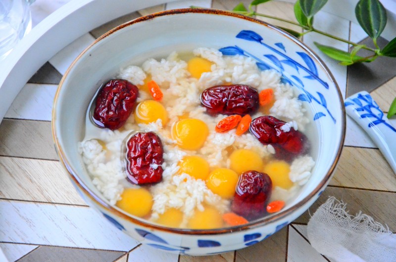 5:再加入酒酿,枸杞拌匀即可出锅。