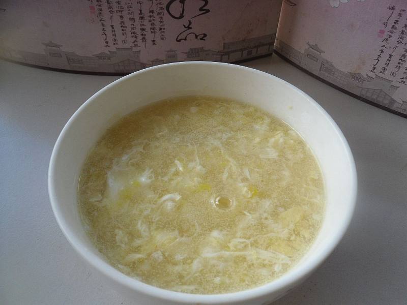 7:小火,倒入鸡蛋,顺时针搅拌开,关火,上桌,一碗细滑,甜而不腻的玉米蛋花羹就做好了。
