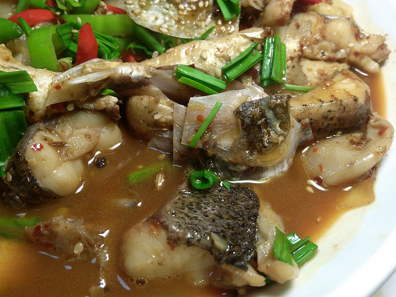 这个鱼也可以炖豆腐哦。样子不怎么漂亮可味道很好,尤其是茄子,非常鲜美。