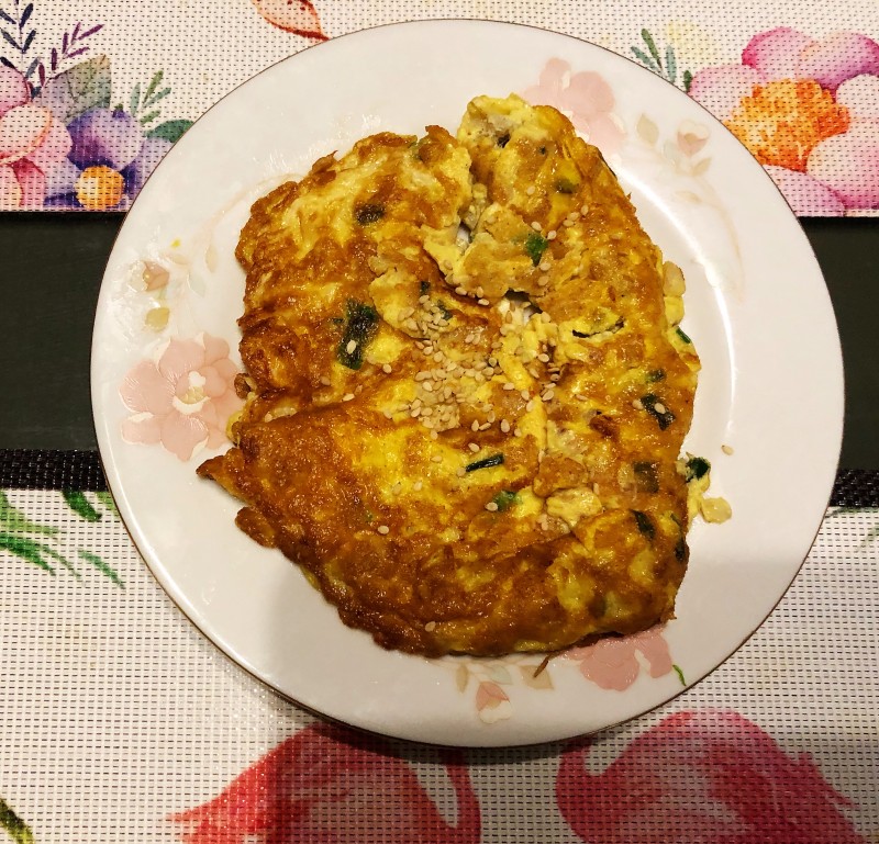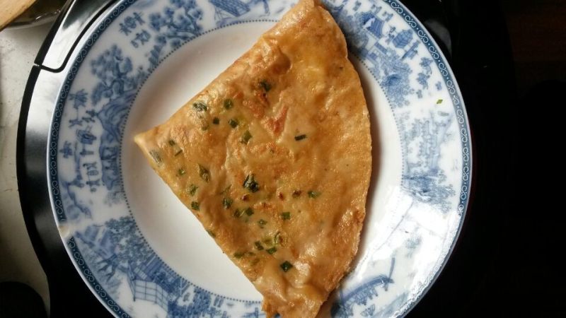 8:用闪光灯拍的香葱鸡蛋虾仁煎饼