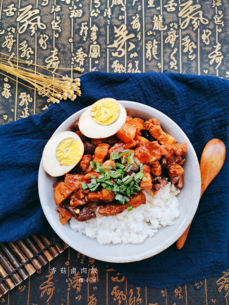 14:搭配一碗热腾腾的香香的米饭,把卤好的肉淋在米饭上,再来一颗溏心的卤蛋就可以了。