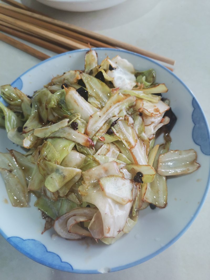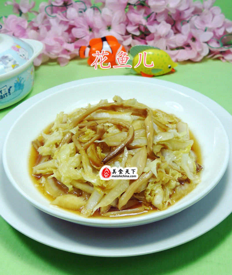 4:加入白菜,炒熟加盐和鸡精调味即可