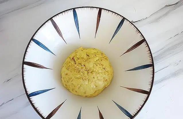 做法简单到爆,先把牛奶微微加热,扔点酵母进去搅匀。接着把这牛奶倒进低筋面粉里,边倒边搅,弄成絮状就行。然后加点玉米油和熟芝麻,揉成一个面团。芝麻最好稍微碾一下,香味更足。