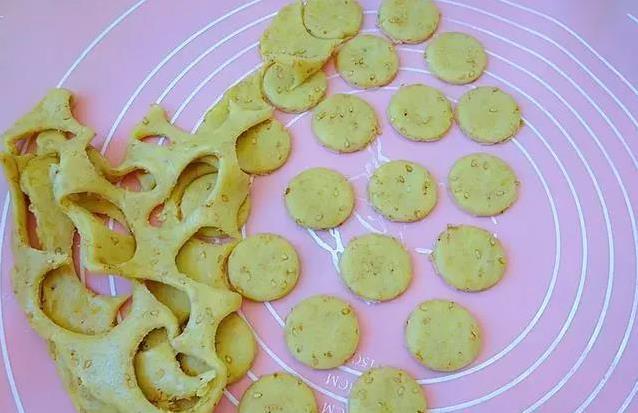 面团揉好后,包起来放半小时醒醒。如果家里温度低,比如不到20度,就多放一会儿。醒好的面团擀成薄片,用模具或者瓶盖压出小饼干的形状。别嫌麻烦,压得整齐好看,吃起来心情都好。