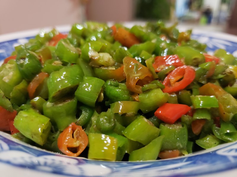 4:锅中留油,炒线椒出辣味。