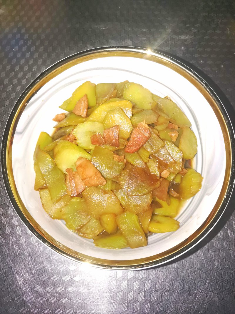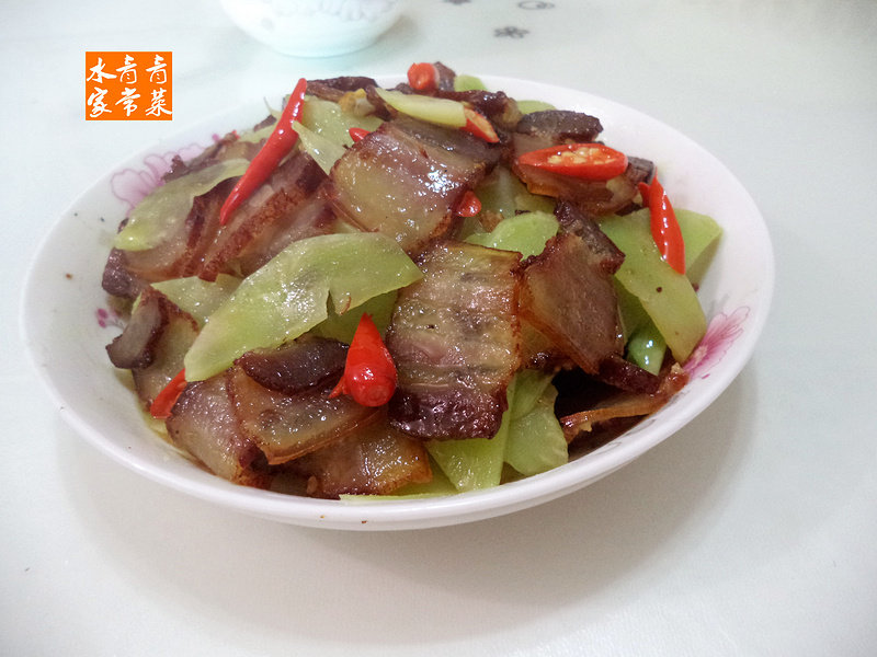 7:放进腊肉,炒好的莴笋盛出再炒腊肉也行