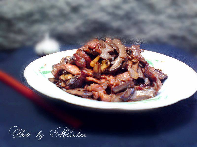 5:腊肉下锅翻炒约3分钟,待腊肉稍微煸出油;