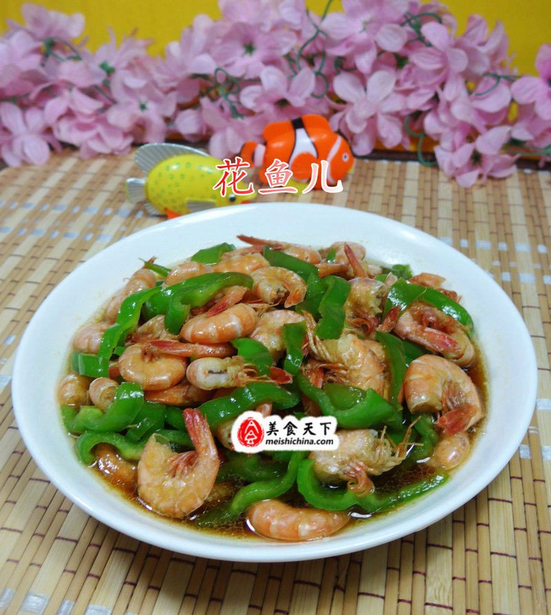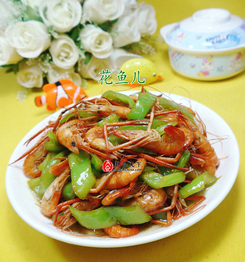 1:食材:海虾(已清洗)、尖椒(已清洗切开)