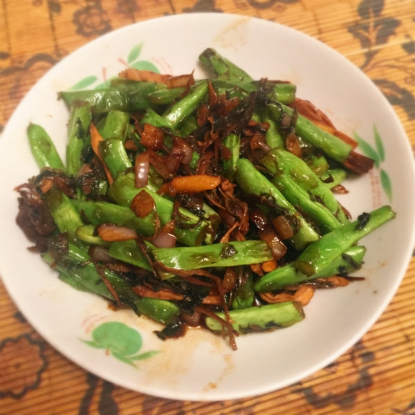 1:四季豆最好选择扁的,没有豆粒的或者小豆粒的。摘去两头和豆角线,洗干净沥干水分。