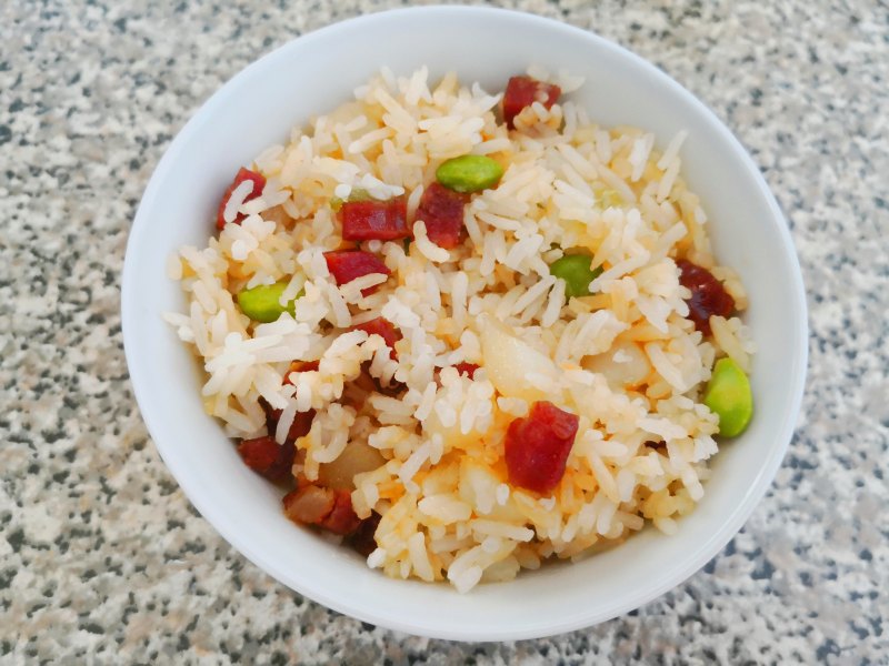 10:米饭吸收了腊肠渗出的油脂,特别的香滑,腊味十足。