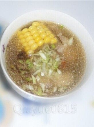 7:炖好骨头,放入玉米和莲藕,在炖20分钟,放入适量的盐大骨汤就好了。