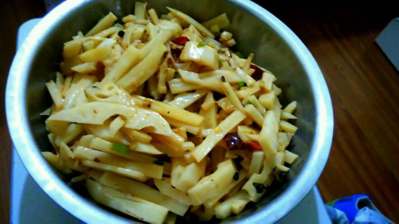 13:最后倒入米醋,糖、盐和鸡精即可出锅。