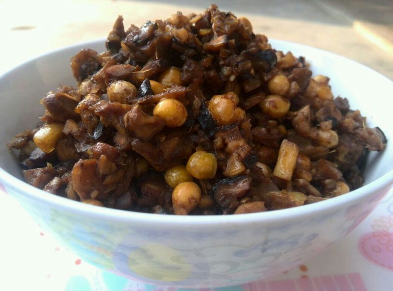 7:放入切碎的豆豉。翻拌。(可以不切碎)